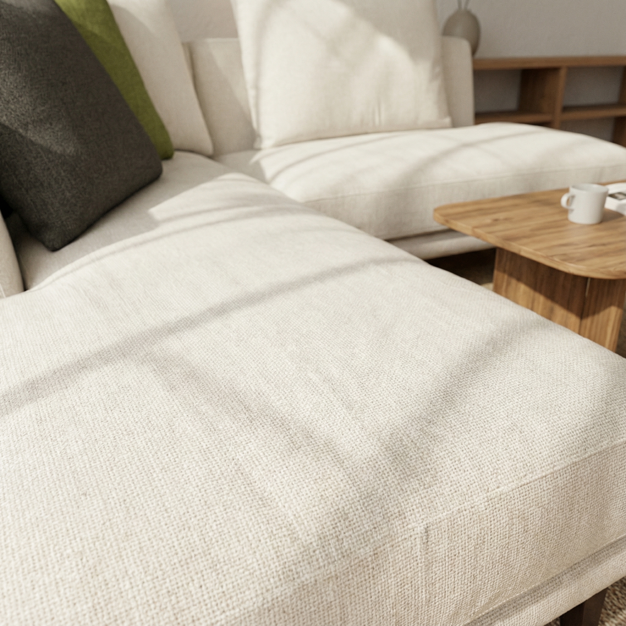 「ソファでは座るより寝転がることが多い」という方に朗報です。 マチルダの座面は、継ぎ目のない「ワンシート」デザインを採用しています。  フルカバーリング仕様でお手入れも簡単なので、気兼ねなく毎日のくつろぎに使えます。